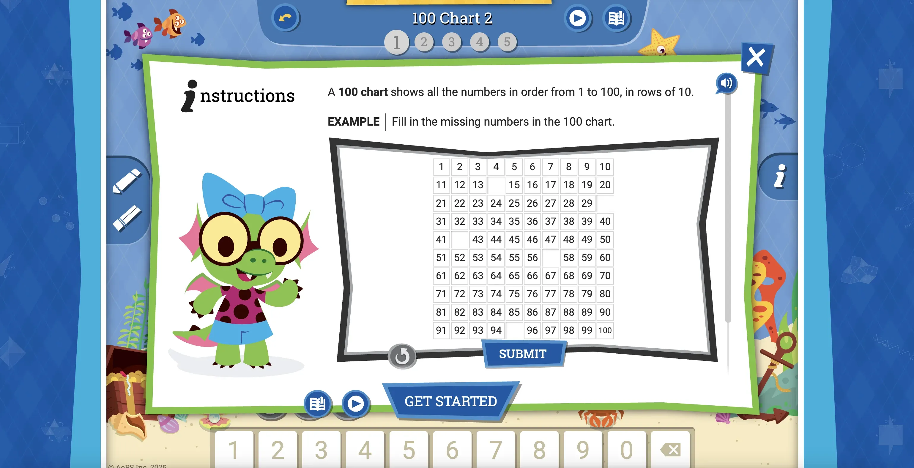 - Uses different visuals similar to what is used in the classroom, such as hundred's chart.
