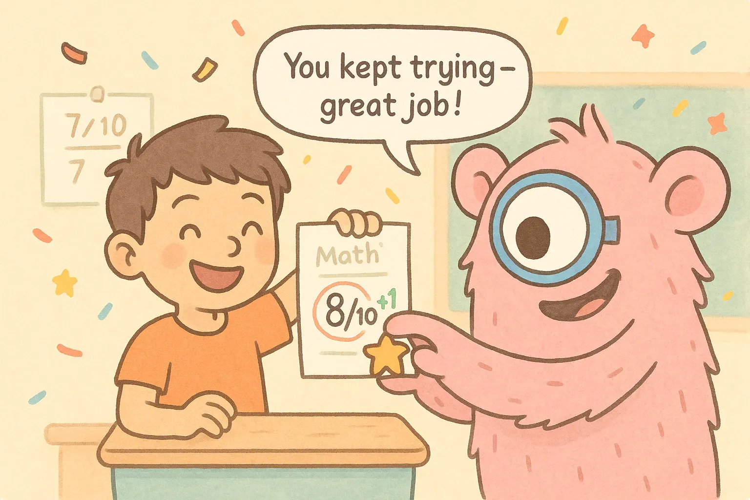 - Celebrate “Math Wins” and Effort: Positive reinforcement goes a long way in building resilience. Each time your child achieves a small math “win,” acknowledge it. This could be finally recalling that 7 + 8 = 15 without counting, or using a new strategy like making 10s to solve a problem. Praise their effort and strategies more than getting the “right answer quickly.” For instance, “I love how you kept trying different ways until you solved it!” or “You worked really hard to learn those four multiplication facts, I’m proud of you.” Research in educational psychology has found that when adults praise effort and problem-solving processes rather than innate ability (“you’re so smart”), children develop greater persistence and resilience after setbacks. They begin to see themselves as capable of improvement. On the flip side, avoid attaching too much praise or criticism to speed or grades.