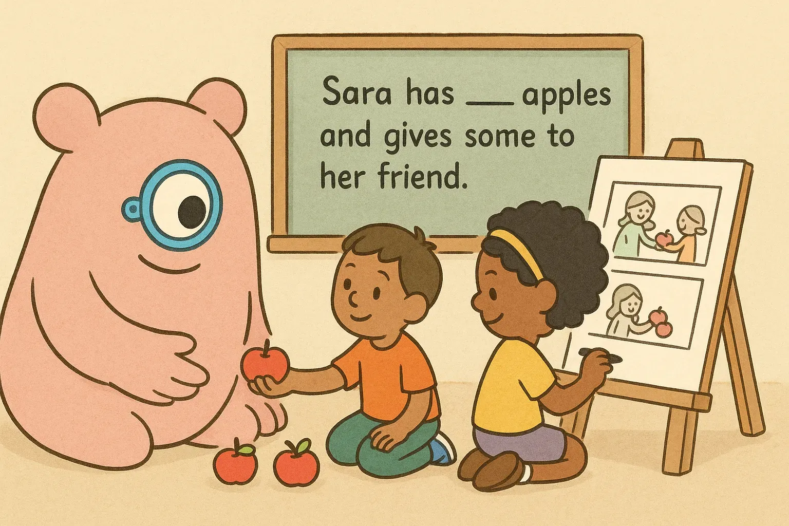 - Storyboard or Act-It-Out: Draw pictures or role-play the problem. For example, act out "sharing some apples" with props. Gradually reveal numbers. NCTM research highlights these for promoting reasoning in early grades (making word problems meaningful).