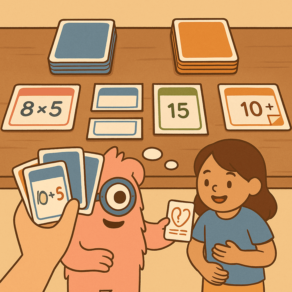 - Alternating turns allow modeling: the parent’s verbalization (“6×7… that’s 42”) demonstrates efficient strategies like grouping or doubling, which the child imitates. In dyscalculia, where memory for number combinations is fragile, repeated recall in a game setting supports automaticity and confidence without anxiety.
