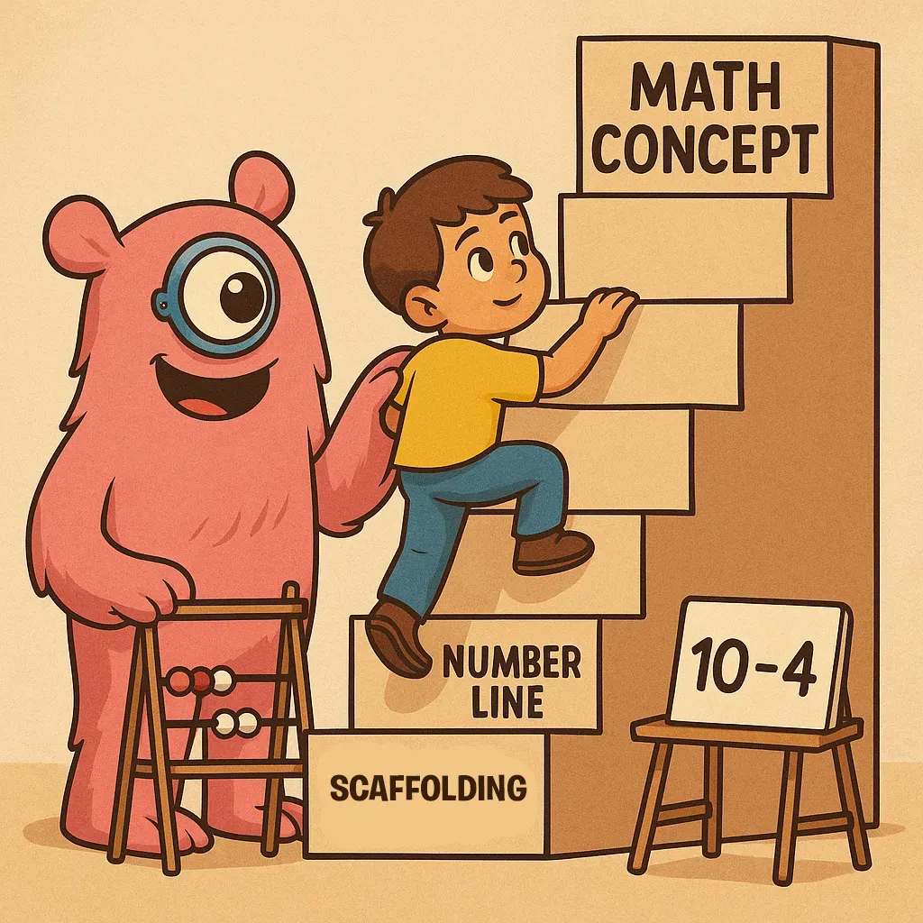 Scaffolding is temporary support that helps a child access challenging content—like hints, visuals, or guiding questions—not a shortcut to the answer. As understanding grows, the scaffolds are gradually removed, helping children become independent problem solvers.