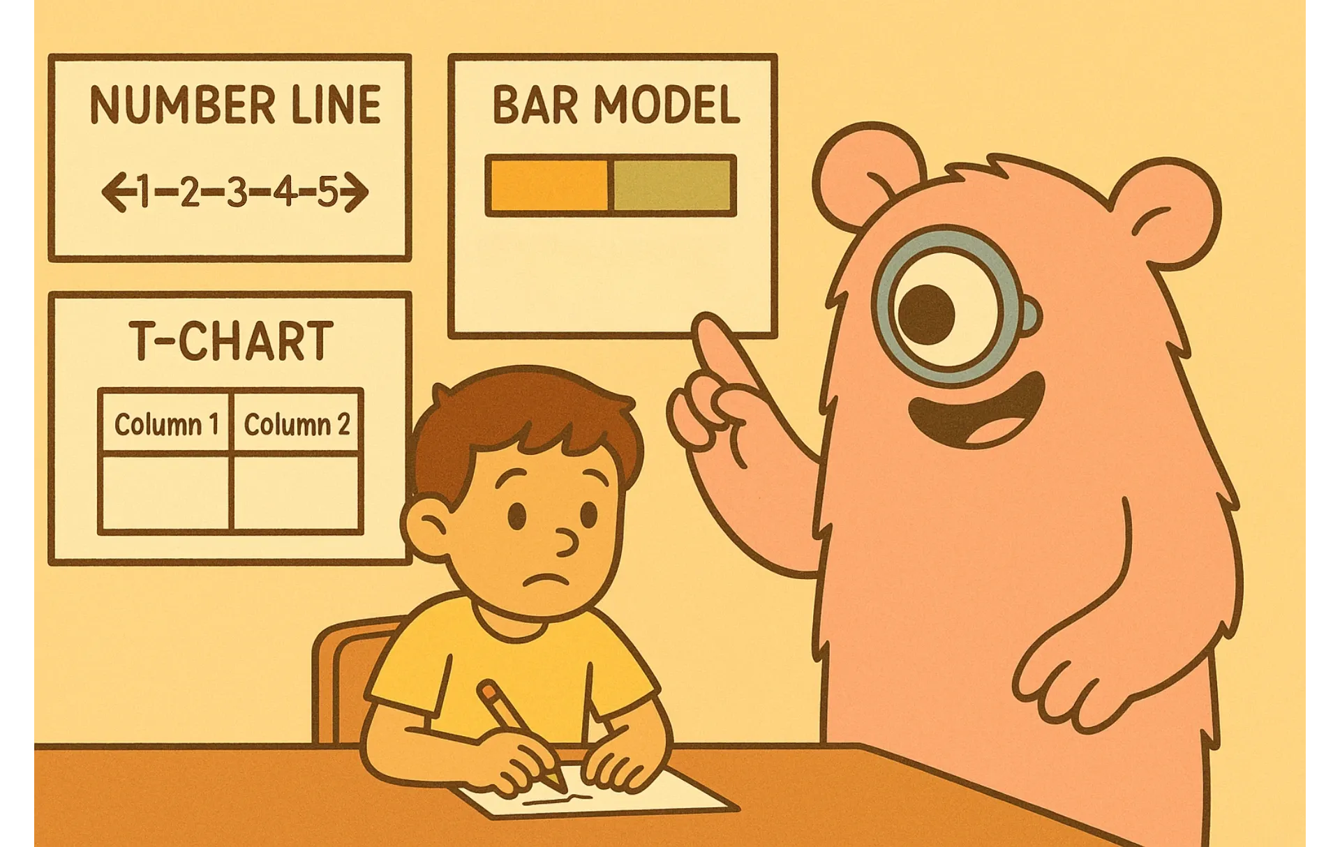 - Maintain organization: Use structured workspaces. For example, label columns in a table or keep equations lined up. Structured representations help children avoid errors and focus on reasoning.