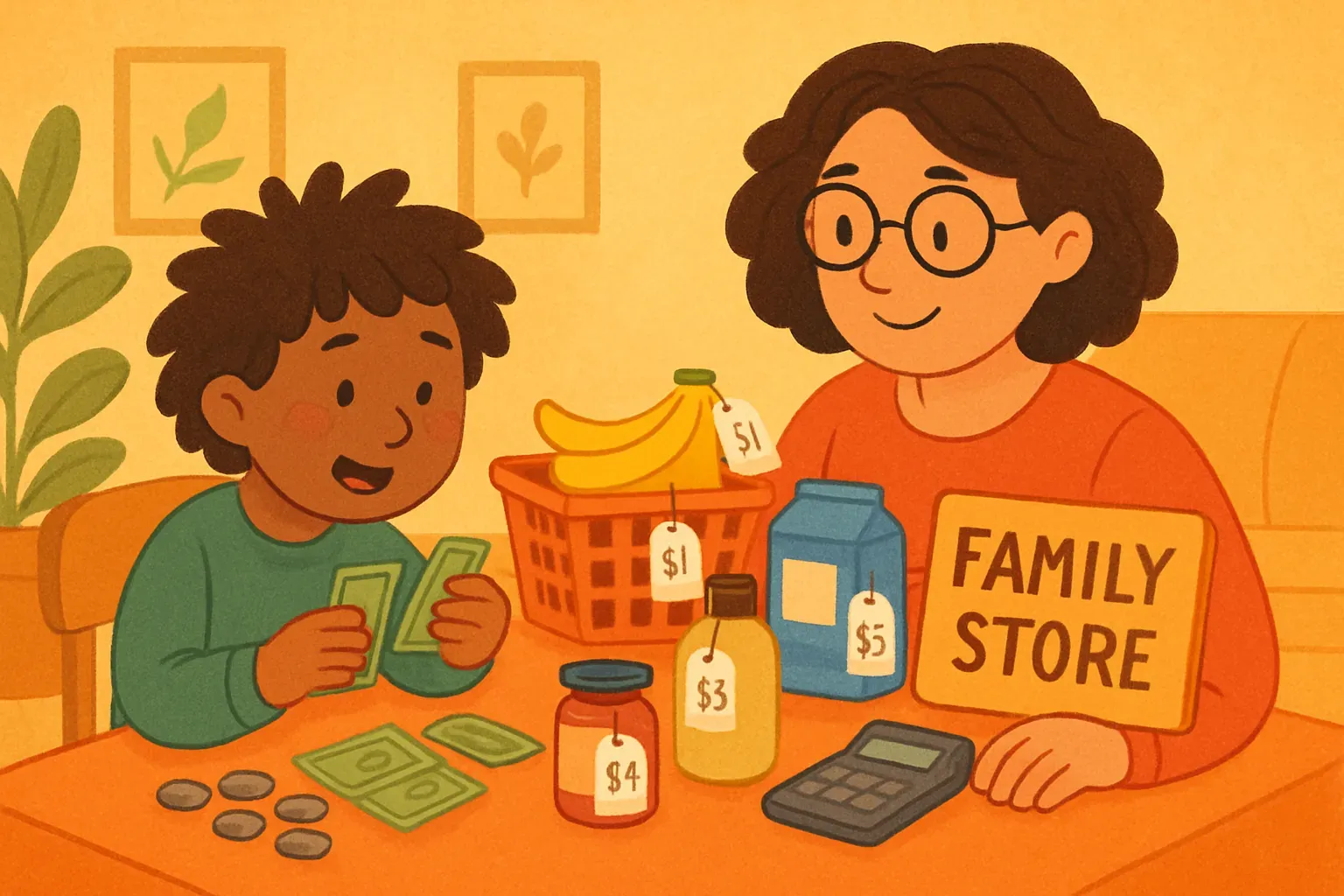 Creating a simulated shopping experience at home transforms abstract money concepts into concrete, practical skills through role-play and real-world application.