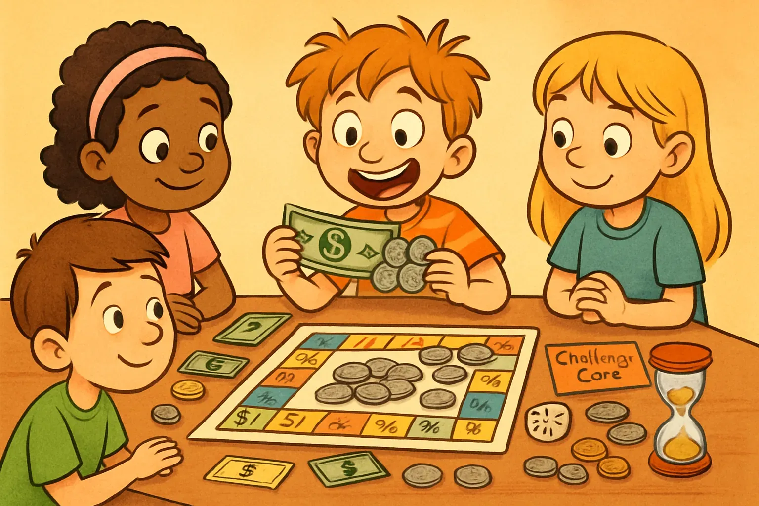 - Create or adapt board games to include money transactions