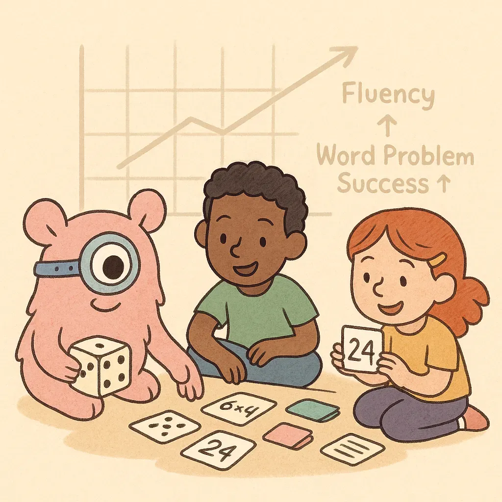 Word problems require multiple skills: reading comprehension, identifying relevant information, and applying operations. Without fluent math facts, children often get stuck on basic calculations, leading to cognitive overload and stress. A 2019 study in Frontiers in Psychology found strong correlations between arithmetic fact fluency and performance on multi-step problems in elementary students, suggesting that fluent recall allows better focus on problem structure.